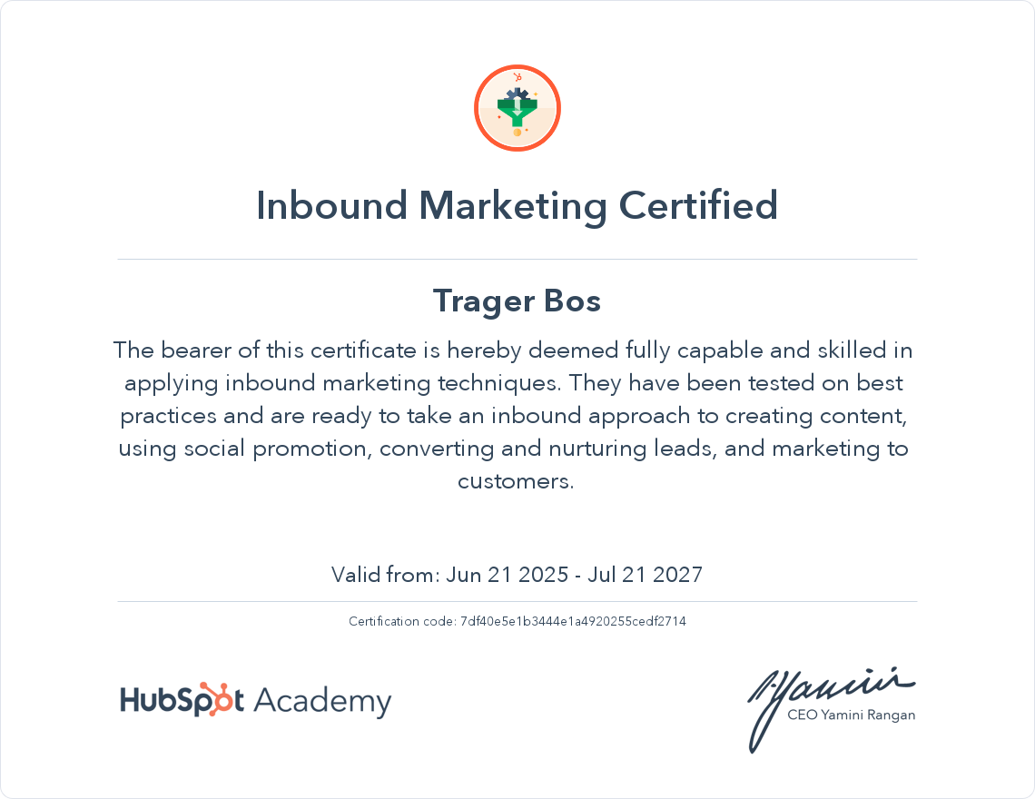 Hubspot Inbound Marketing Cert